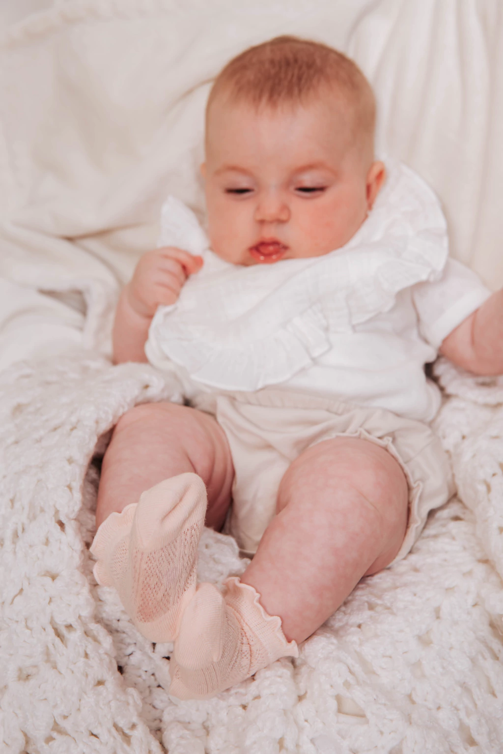 ✨ Cómo combinarlas: Perfectas para acompañar ranitas, vestidos o conjuntos tejidos en tonos vainilla, blanco o gris perla. Una opción encantadora para completar looks románticos y suaves.
